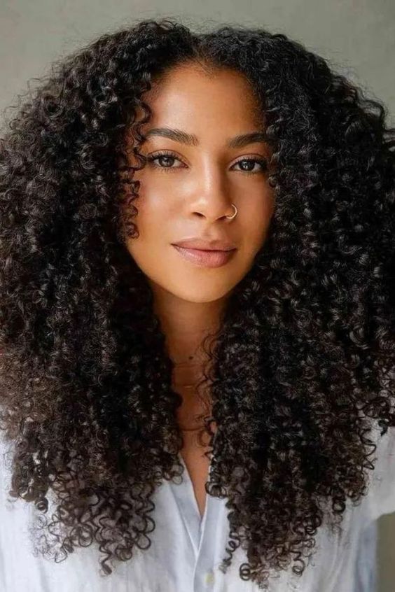 Classic and effortless curly hair styles, the middle part enhances your natural texture and frames your face beautifully. It’s a versatile look that can be dressed up or down for any occasion.