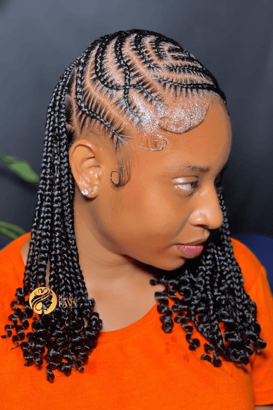 A bold and stunning curly hair styles that combines the sleekness of cornrows with the voluminous beauty of curls. It’s a beautiful way to protect your hair while looking effortlessly stylish.
